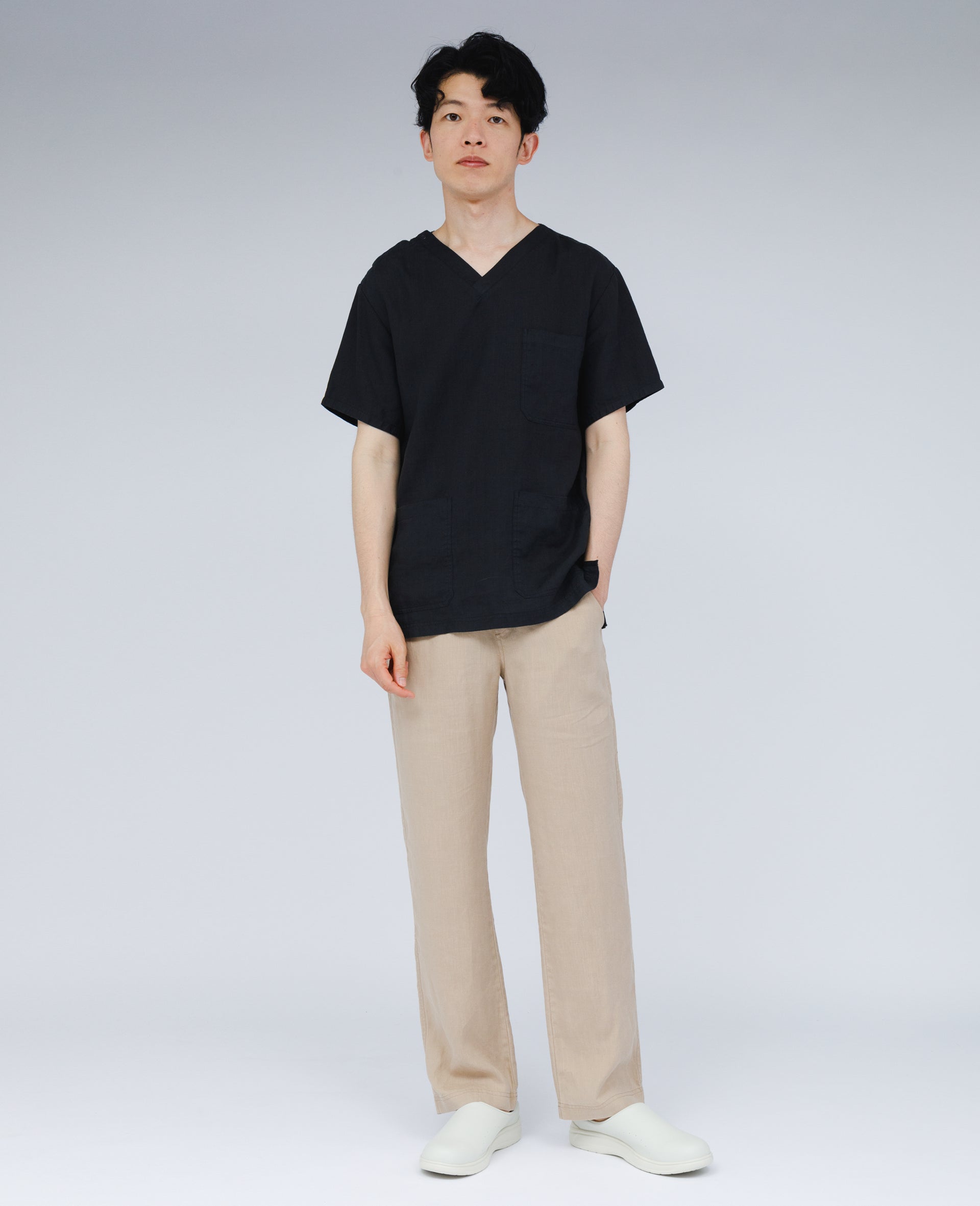 カラーバリエーションはネイビー、ブラック、アースカラーのベージュを取り揃え、個々のスタイルや医療現場のニーズに合わせて選べます。上下同色のカラーはもちろん、上下のカラーを別々に組み合わせることで、さまざまな雰囲気をお楽しみいただけます。